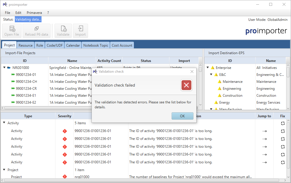 - Validierung von Dateninkonsistenzen und Schutz der P6-Zieldatenbank vor korrupten Daten