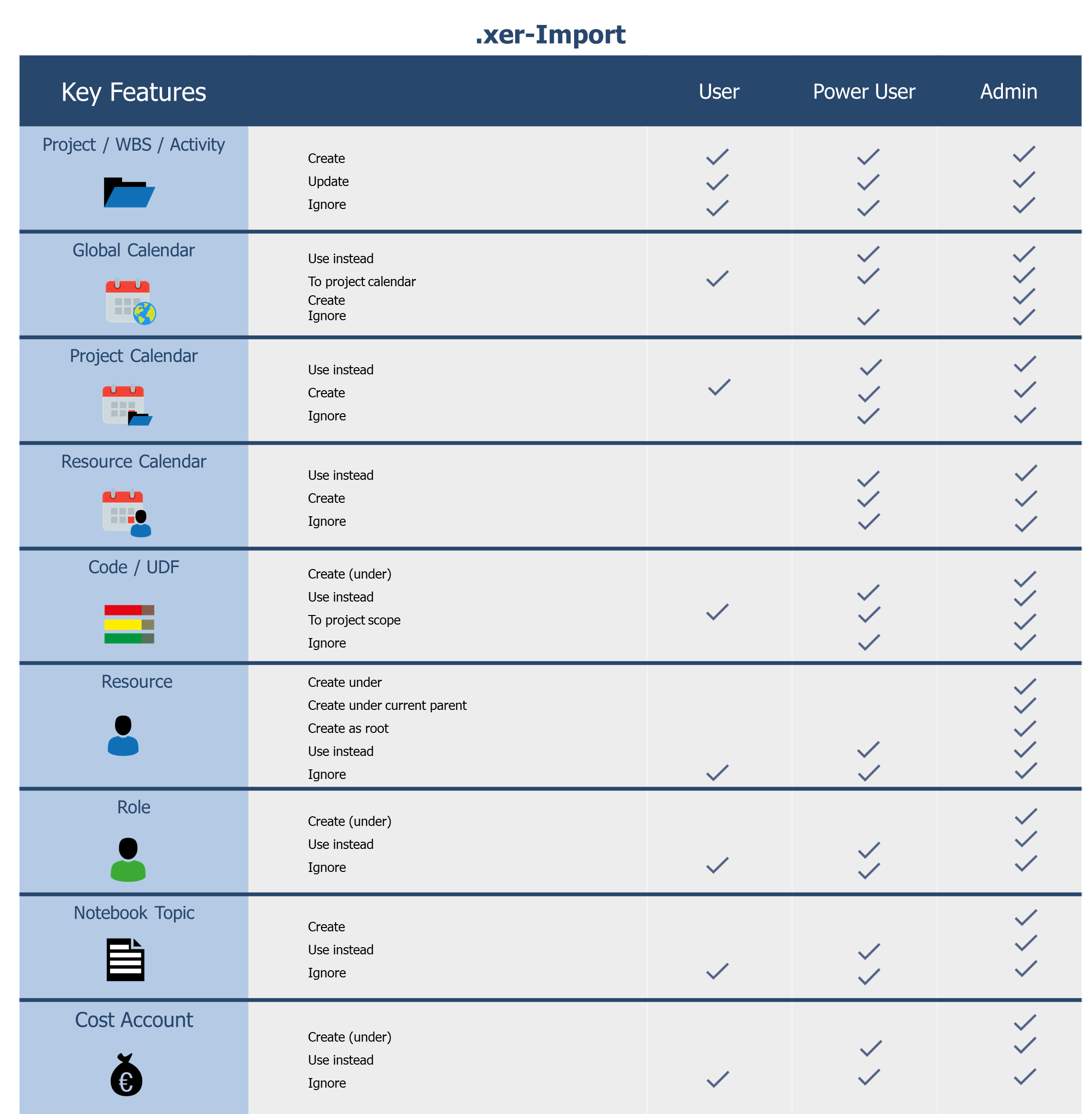 The software offers extensive features for the loss-free import of XER and MPP files into Oracle Primavera P6 databases. This eliminates the need for time-consuming conversion of import files into XML. proimporter makes your import process simple, efficient, and time-saving.