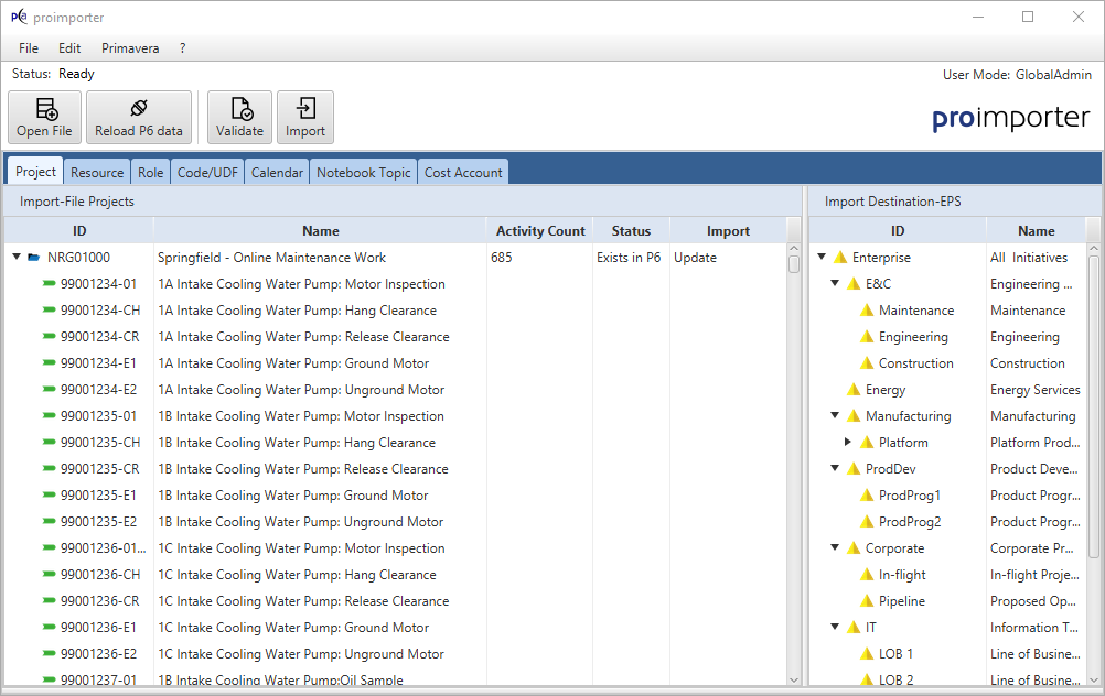 - Validation of data inconsistencies and protection of your P6 target database against corrupt data